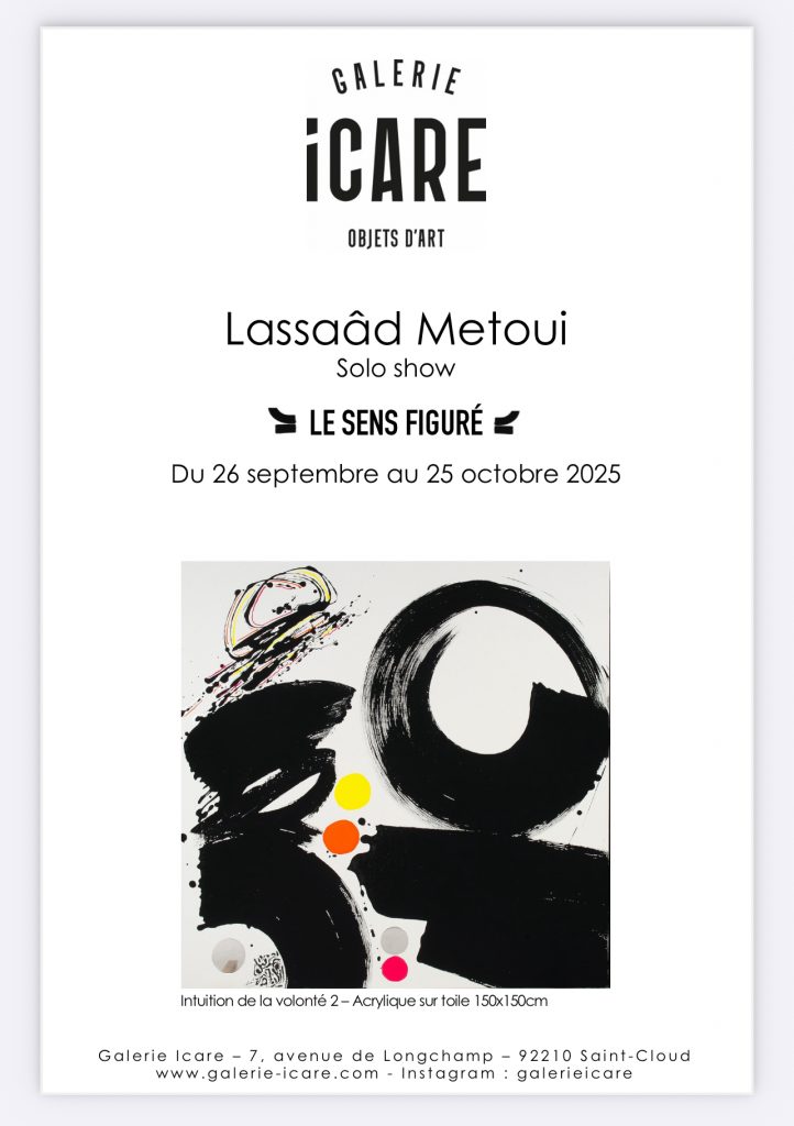 Calligraphe plasticien tunisien, installé en France depuis le début des années quatre-vingt Lassaâd Metoui est aujourd’hui un artiste majeur dans sa discipline. Il manie avec maestria le calame et le pinceau dans des créations librement inspirées de l’art calligraphique.
